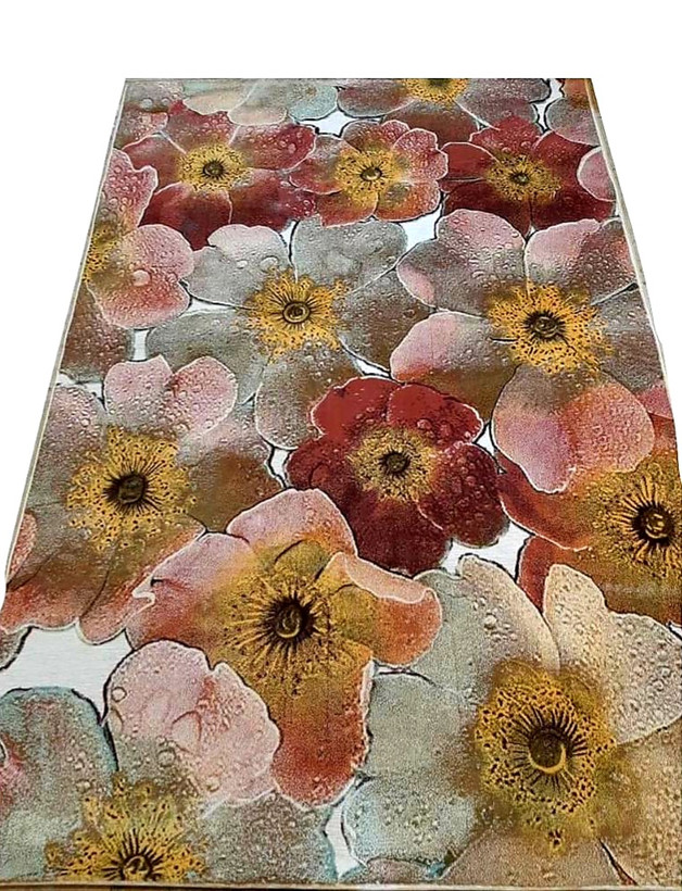 فرش ماشینی شکوفه صورتی شنل نقش برجسته
