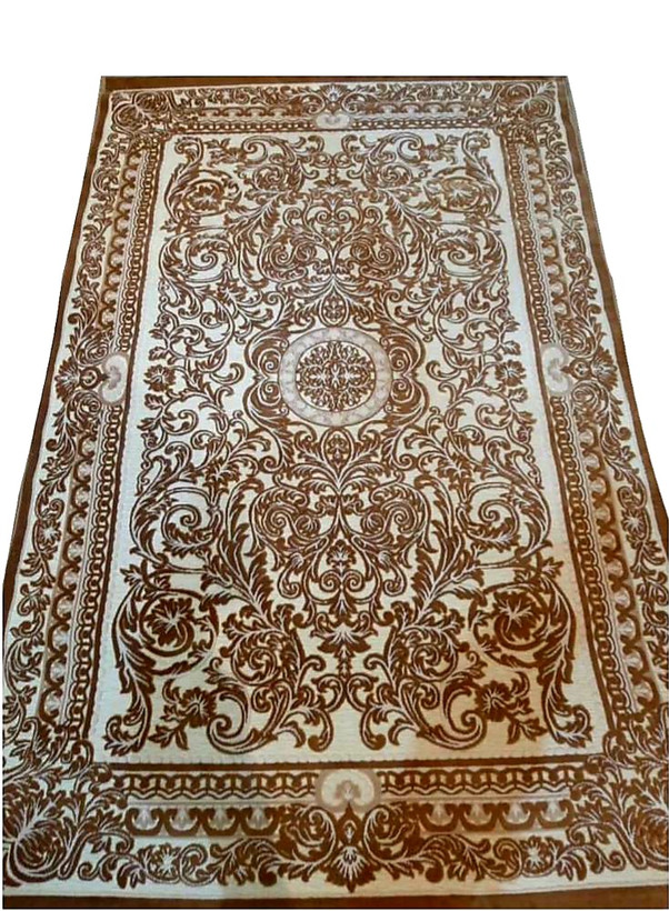 فرش ماشینی گیلانه بادامی شنل نقش برجسته