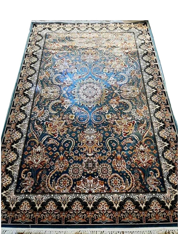 فرش ماشینی ستاره آبی درباری 1000 شانه تراکم 3000 پلی استر درجه 1 صادراتی