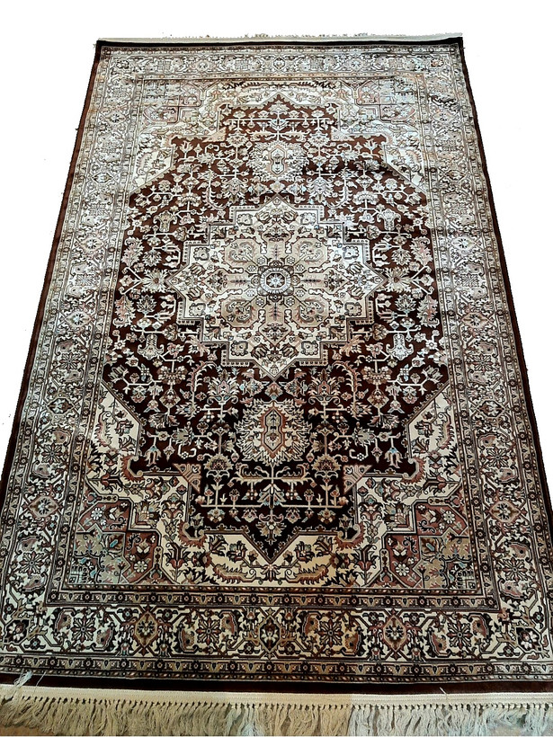 فرش ماشینی هریس قهوه ای طرح دستباف ابریشم گونه