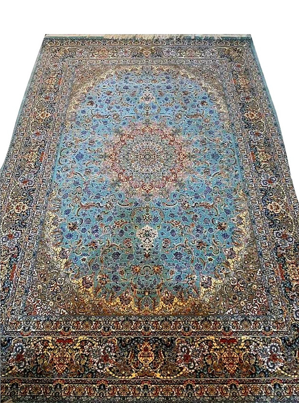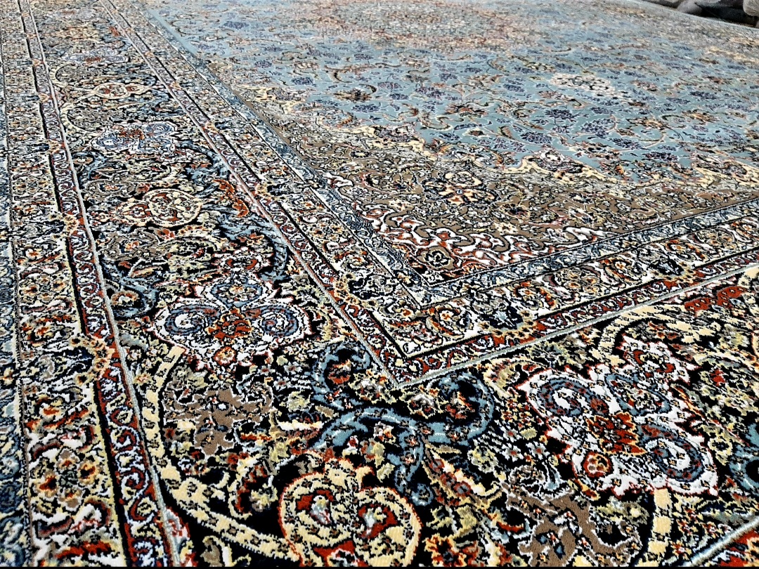 فرش ماشینی نایین(طرح4001) آبی 700 شانه تراکم 2550 اکرولیک خارجی